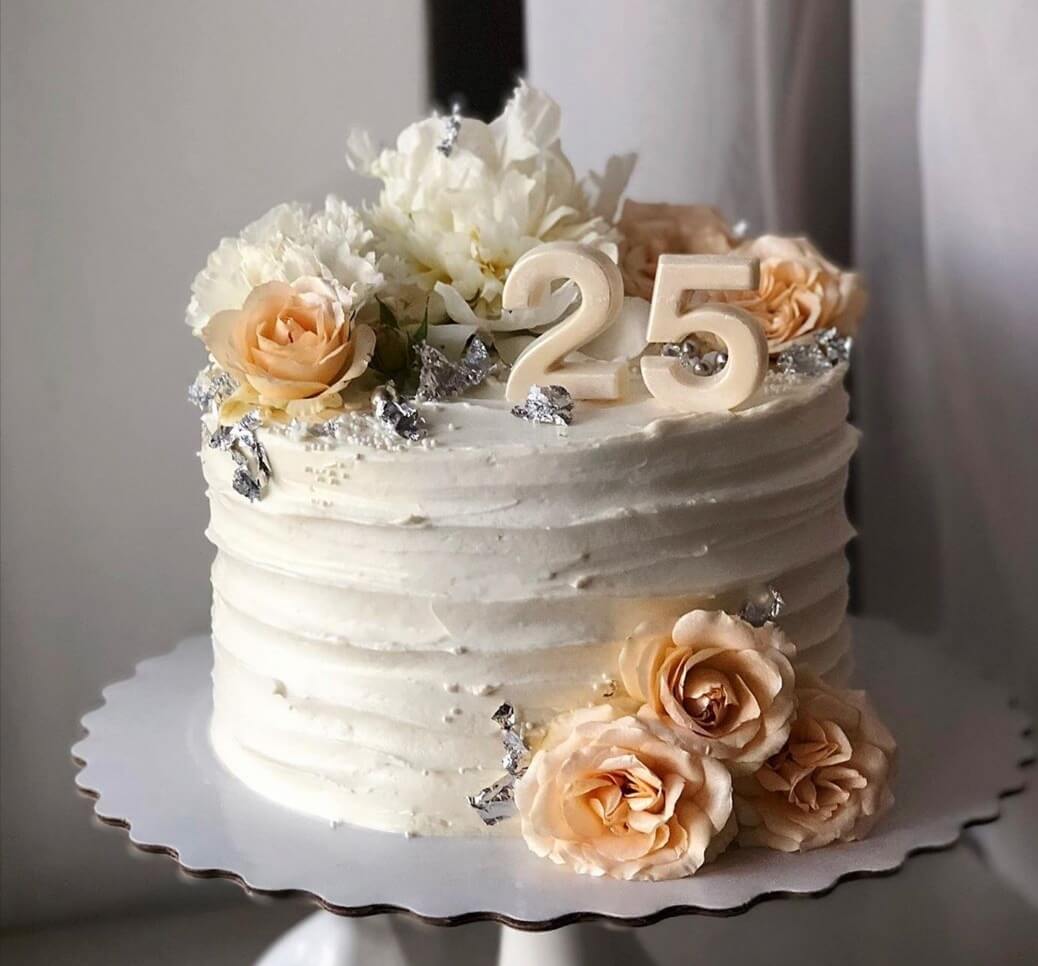 Трогательный тортик, украшенный цветами отлично подойдет в качестве подарка нежным и утонченным натурам